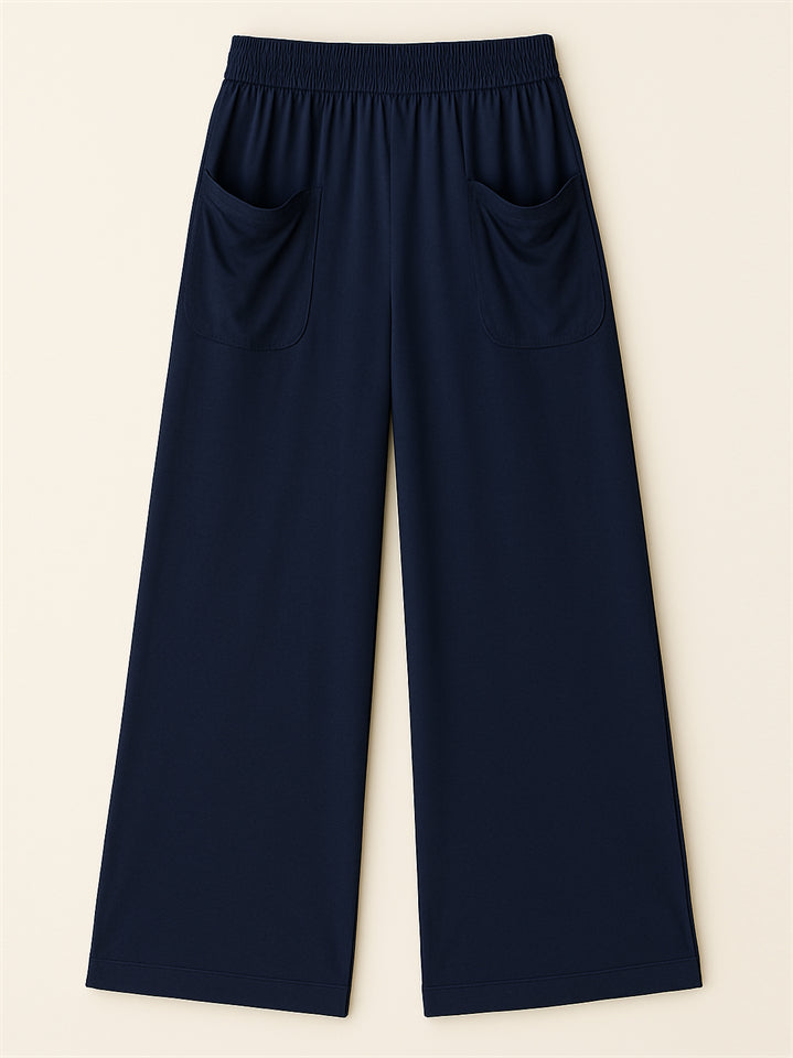 Be the first to review “Simple Solid Color Pockets Elastic Hight Waist Wide Leg Pants for Women”