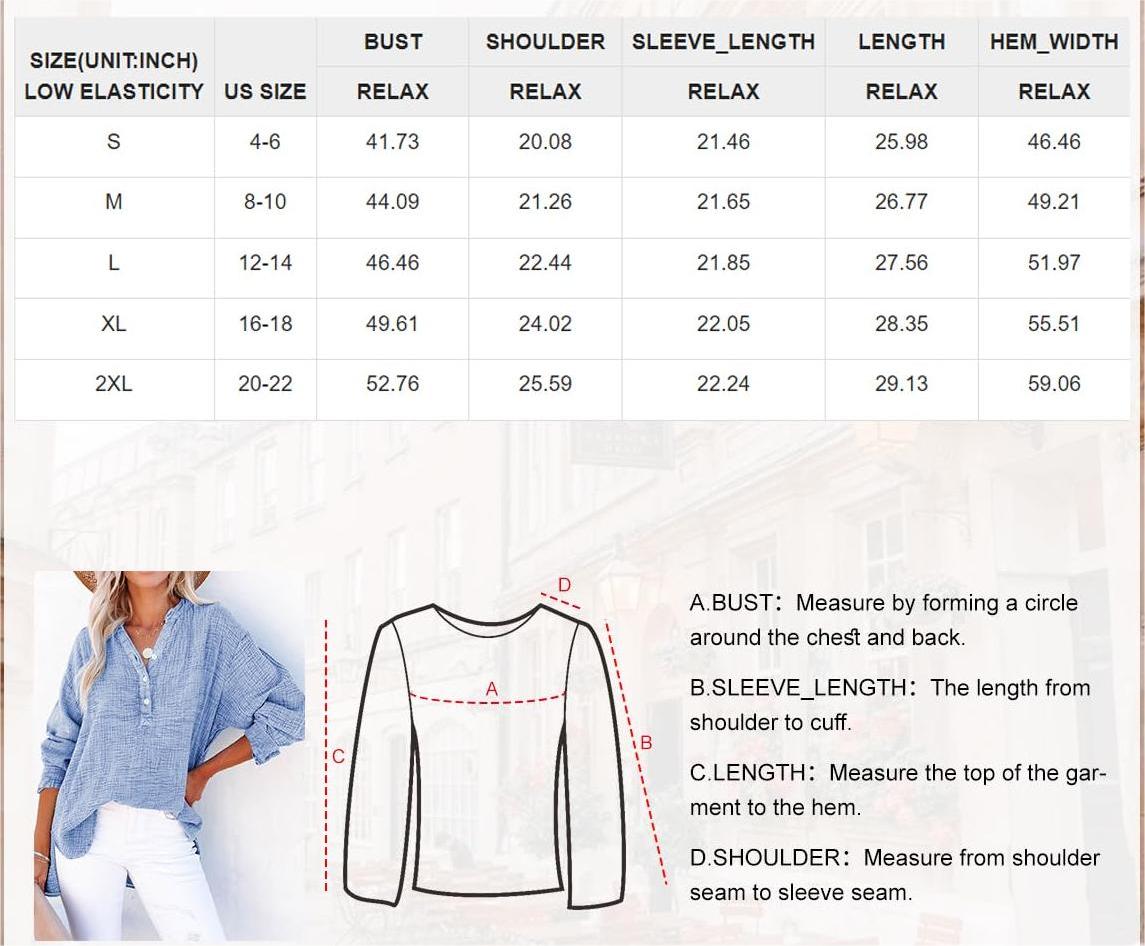 The women’s top is made of high quality fabric. Soft, lightweight and comfortable to wear. You can wear this lightweight blouse with a variety of coats, jackets, coats, blazers, jeans, denim shorts, skirts, leggings, trainers or heels for a casual look for all seasons.